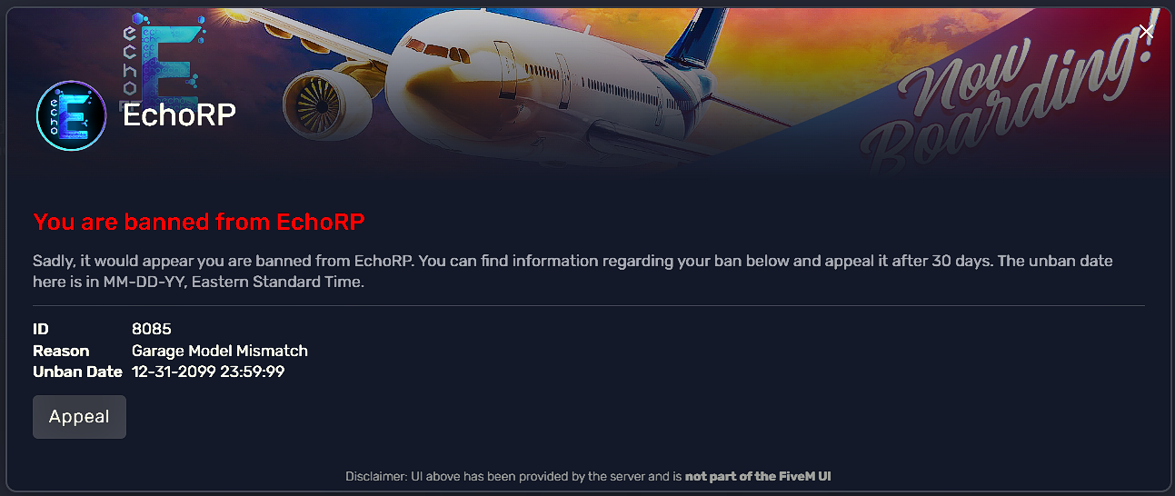 Had a vehicle plate swapped from my old PD car to my new PD vehicle. Pulling the vehicle out doesn’t cause any issues it only happens once you try and store the vehicle. Upon trying to store the vehicle the server banned me for Garage Model Mismatch. The plates say they’re swapped in the select screen but when pulling the vehicle out the plate is still the old plate.