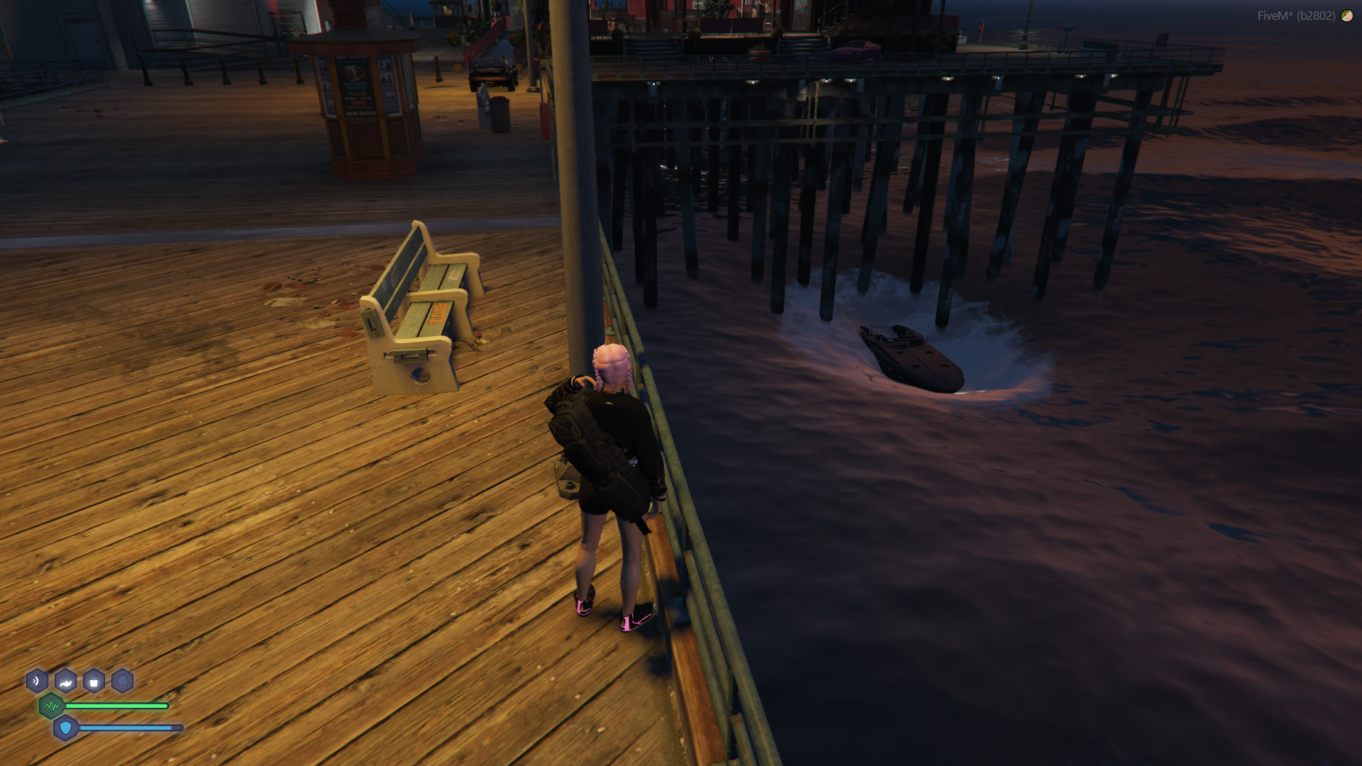 Whenever the boat is anchored, from my perspective it looks as if the boat is slowly being dragged under water, if I try to stand then I am pushed off or under the boat and stuck in the water. This happened both today and yesterday, but the other people on the boat do not see the same thing, the boat just looks fine. But when we parked by a pier today, two people on the pier could see it sinking like I could.